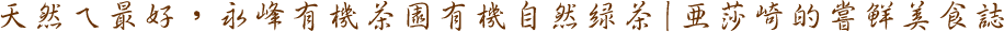 ^"^亞莎崎家經常用來泡冷泡茶的綠茶,永峰有機茶園有機自然綠茶,是經過國立成功大學認證通過的有機綠茶。
